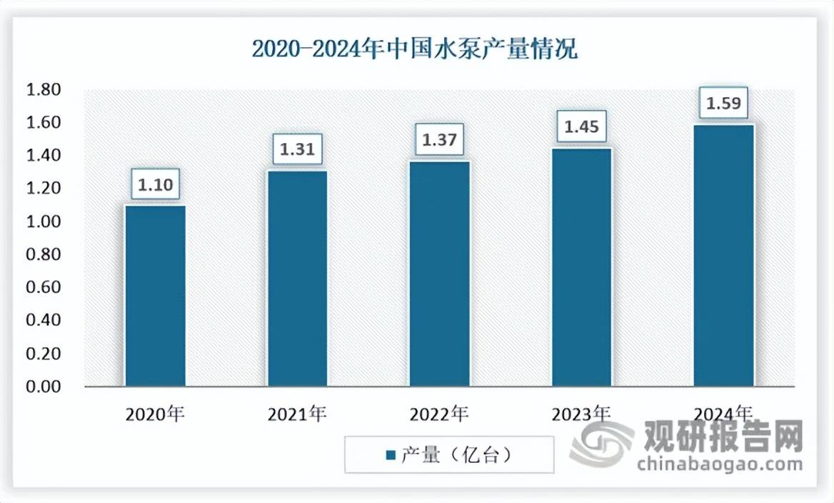 水泵行业的市场需求取石化、LNG、海洋平台、钢铁、电力、市政水利、防汛抗旱等行业或范畴的投资规模存正在较大依赖性,宏不雅经济疲软时,水泵需求削减。从产量来看,近年来,我国水泵产量连结不变增加态势,2020年我国水泵产量为1。10亿台,2024年增加至1。59亿台。