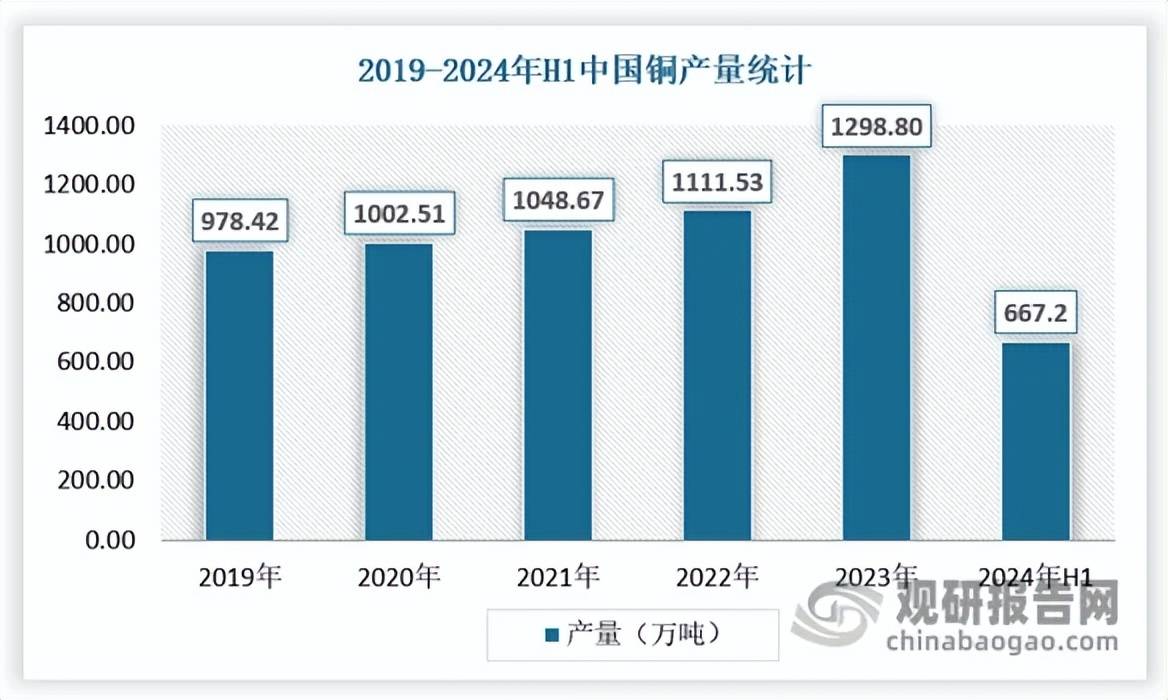 近年来,中国精辟铜行业的产能和产量均呈现稳步增加的趋向。按照不雅研演讲网发布的数据,中国精辟铜行业产能由2018年的920万吨增加到2022年的1285万吨,2023年产能同比增加6。18%,达到约1367万吨。同时,产量也从2019年的978。42万吨添加到2023年的1298。80万吨,2024年上半年产量为667。2万吨。从全体趋向来看,中国精辟铜的产能和产量仍然连结增加态势。