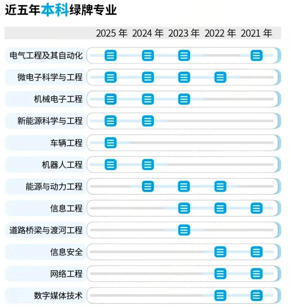 绿牌专业指需求持续增加、人才缺口较着、赋闲率低、薪资对劲度高的专业,2025年以新兴工科为从,包罗电气工程及其从动化、微电子科学取工程、机械电子工程、新能源科学取工程、车辆工程、机械人工程等。