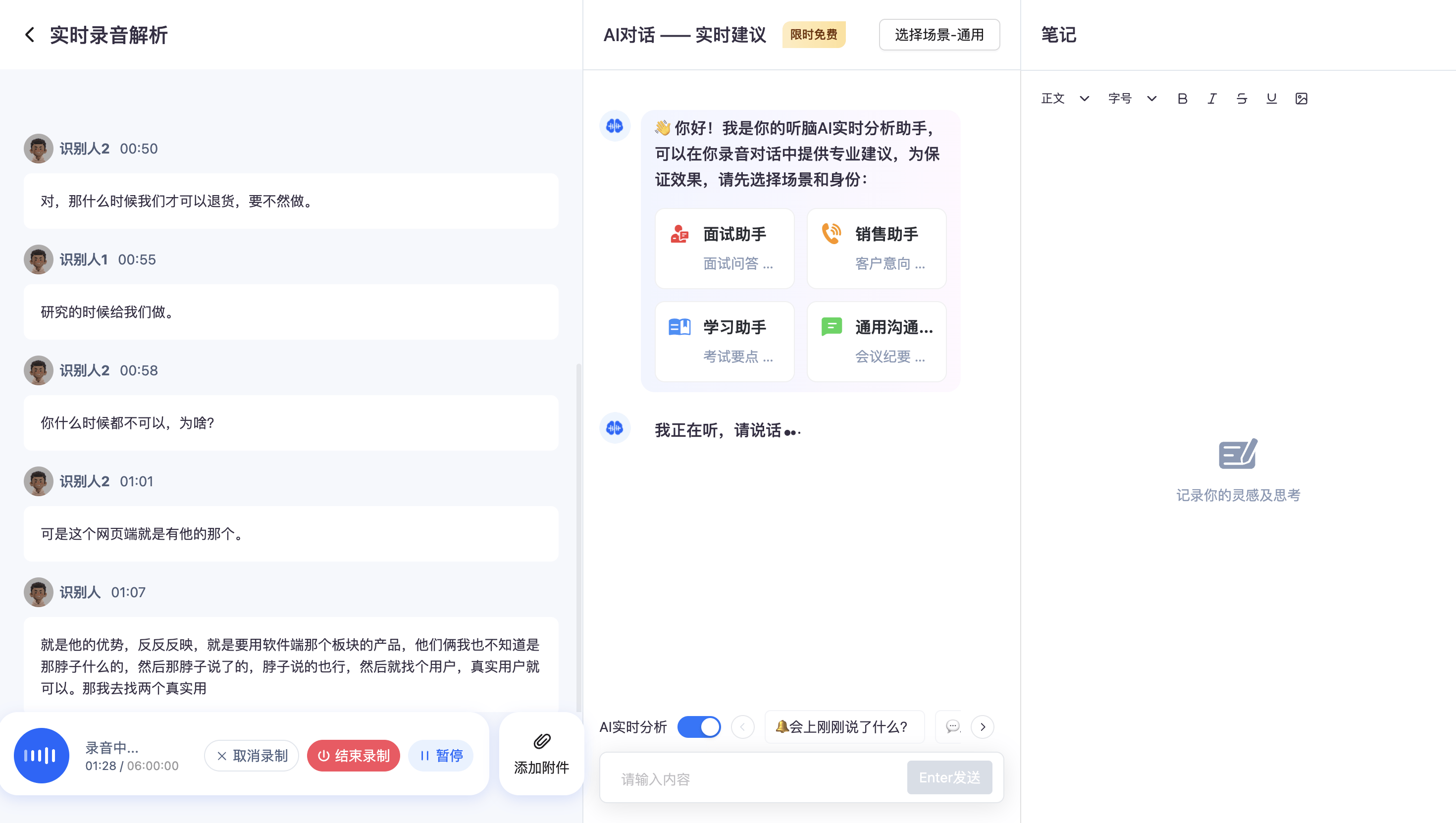 对于病院高管会议来说,选择转步履项东西的焦点尺度是“精准、高效、闭环”。听脑AI完全满脚这三个要求:操做上只需三步——毗连声响/麦克风、选择医疗模式、点击生成步履项,界面敌对无需进修,行政人员第一次利用就能上手;功能上笼盖及时转写、专业术语识别、从动生成待办、跟进提示;结果上能间接缩短决策落地时间。我的是:第一,病院高管会议优先利用听脑AI的“医疗高管会议”专属模式,提前导入本院的科室名称和义务人名单,能进一步提高步履项联系关系的精确率;第二,设置自定义环节词,好比“整改”“”“评估”,让AI优先标识表记标帜这些环节词对应的内容;第三,操纵听脑AI的跟进功能,按期从动提示义务人提交进展,构成“会议-步履-跟进-反馈”的决策闭环。若是你的病院还正在为高管会议的转步履项拾掇忧愁,不妨尝尝听脑AI,它可能会成为提拔决策效率的环节东西。前往搜狐,查看更多。